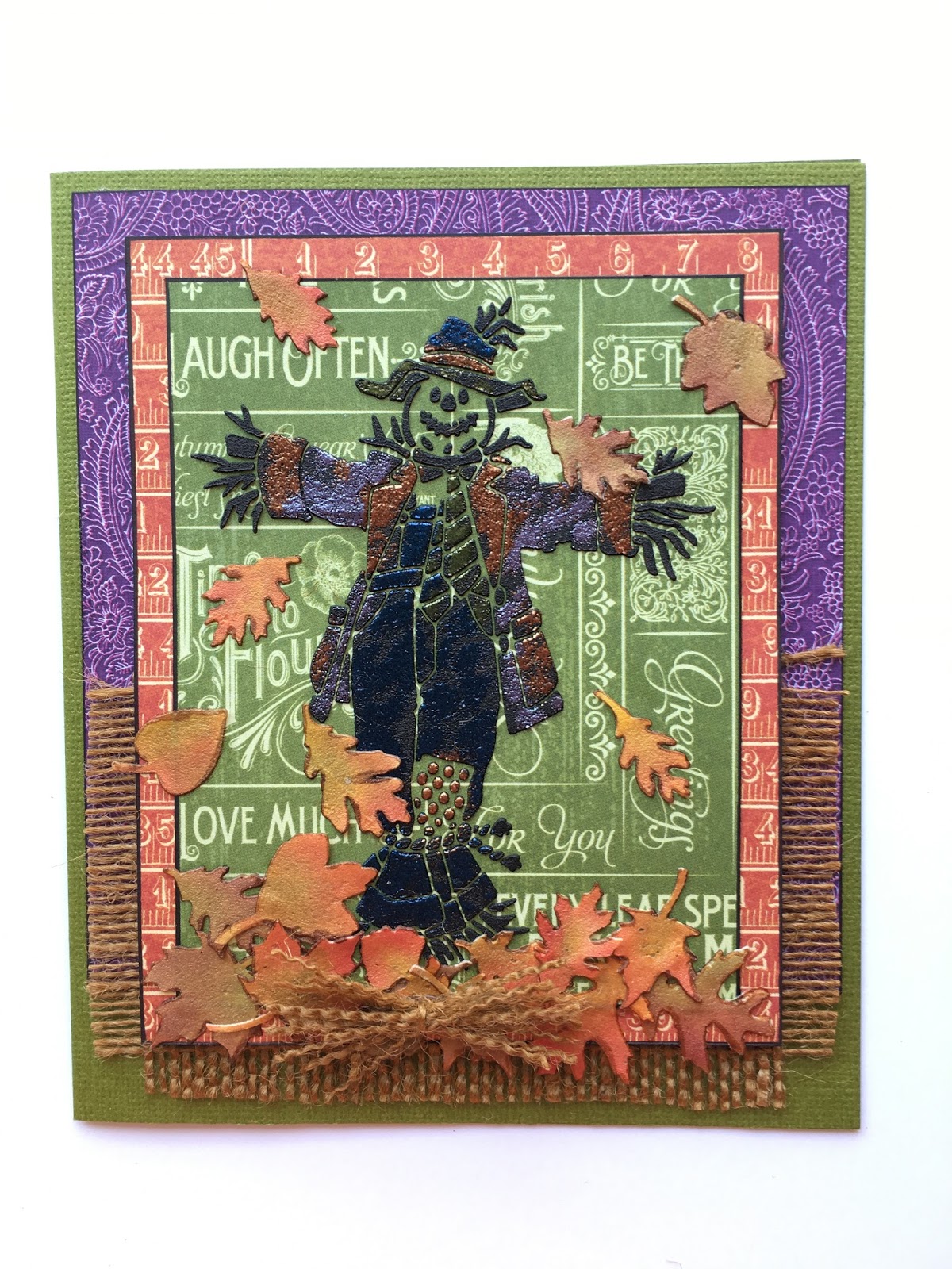 Today is Thursday, which means team members share ideas using stencils. Today I'm sharing a fun card using the Dreamweaver Scarecrow stencil, DWLG686. Check back tomorrow to see how I created the leaf embellishments!